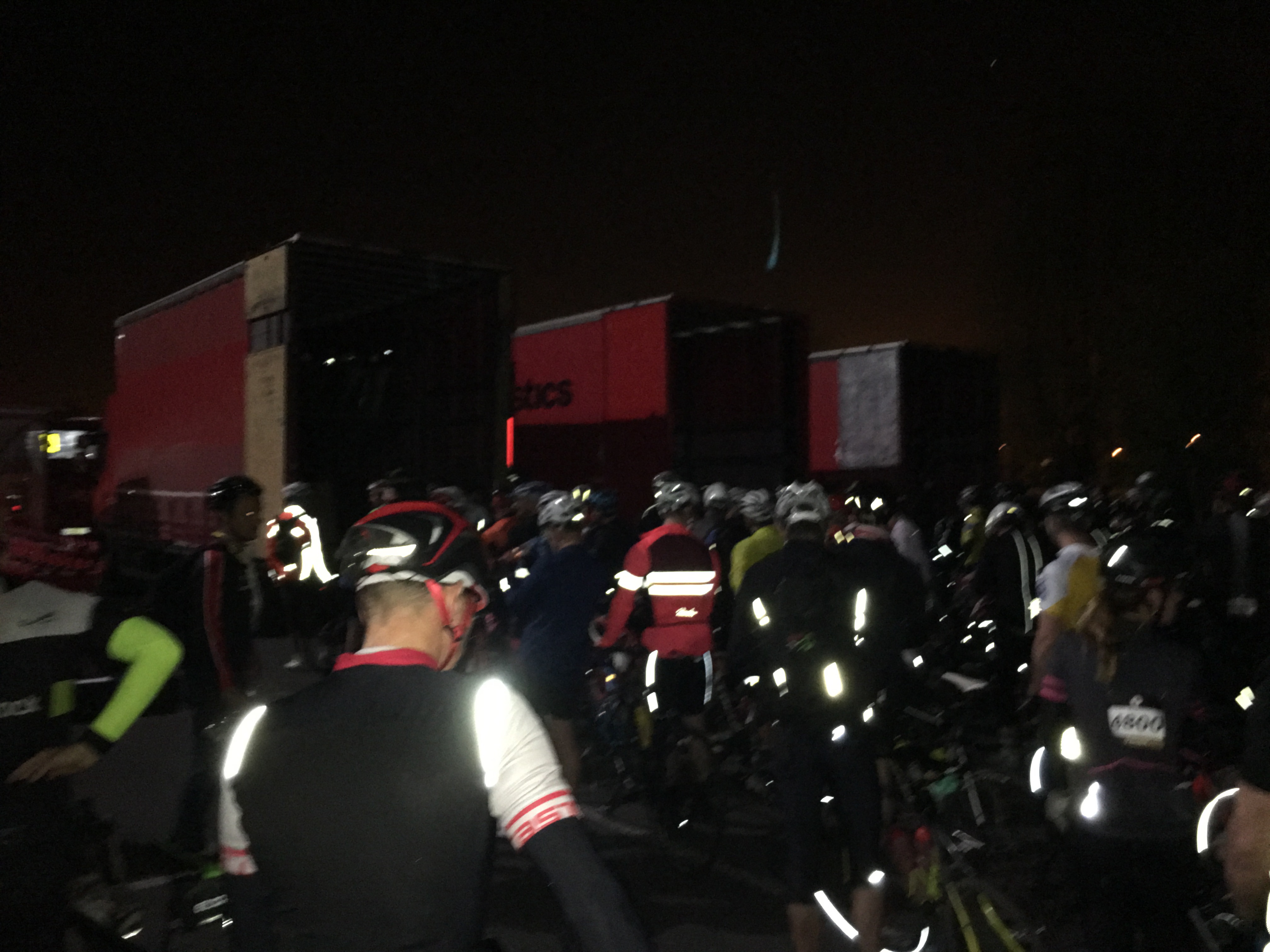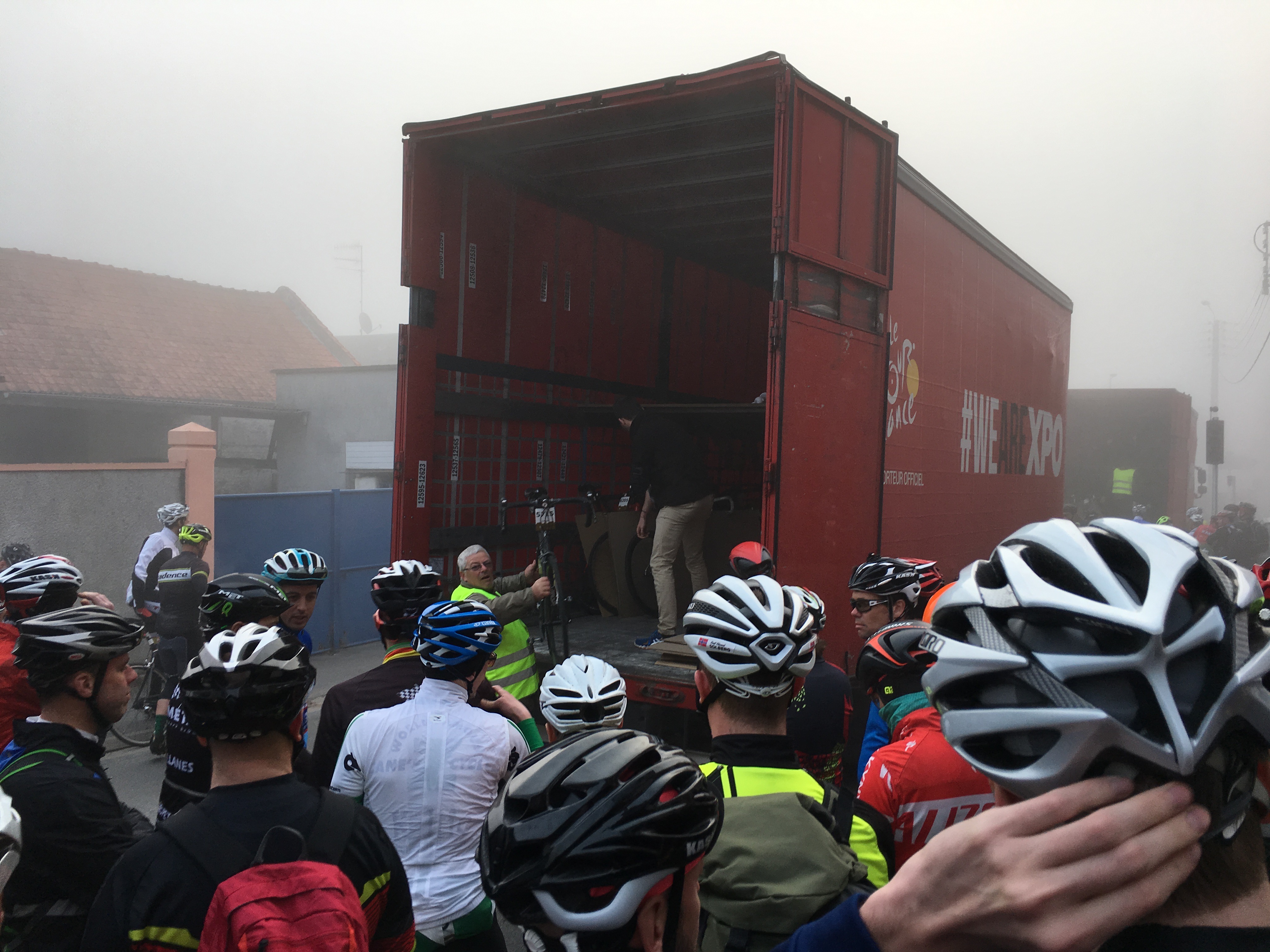 Am nächsten Morgen – oder besser gesagt mitten in der Nacht um 3:10 Uhr – klingelte bereits der Wecker. Nach Anziehen, Frühstücken und Verladen unserer Räder fuhren wir Roubaix: auf uns wartete ab 5 Uhr der Bus Transfer nach Busigny. Zusammen mit einigen hundert anderen Rennradfahrern warteten wir auf die Abfahrt nach Busigny, dem Startort der Paris Roubaix Challenge 170 km Strecke.